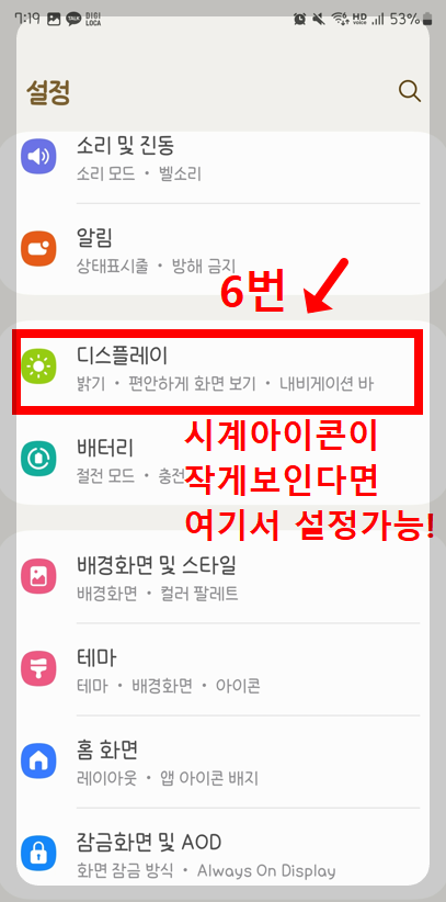 - 좌측 상단 드롭다운 메뉴 → Always On Display 설정 선택