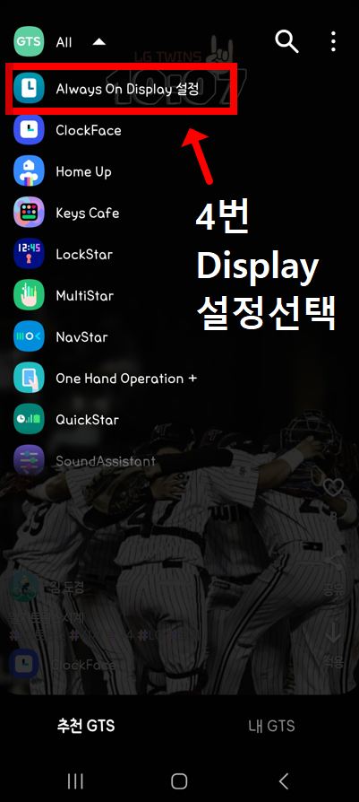 - 좌측 상단 드롭다운 메뉴 → Always On Display 설정 선택