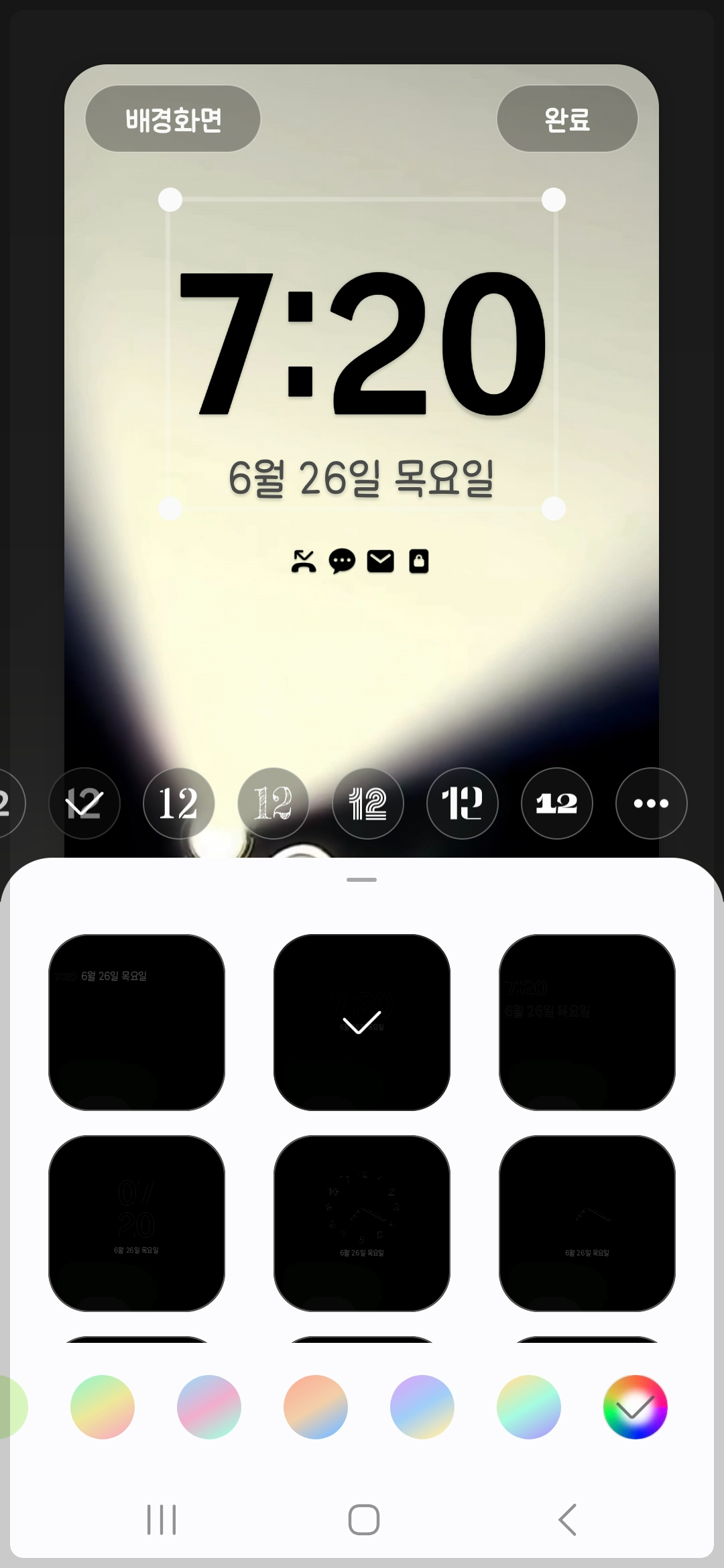 - 기기 및 One UI 버전 자동 감지 후 최적화된 설정 적용하시면 됩니다. 내가 적용한 배경화면의 시계가 작거나 색상이 흰색 또는 밝은 색상이면 안보일 수 있으니 위의 사진 참고하셔서 적용해주세요!😊♥️